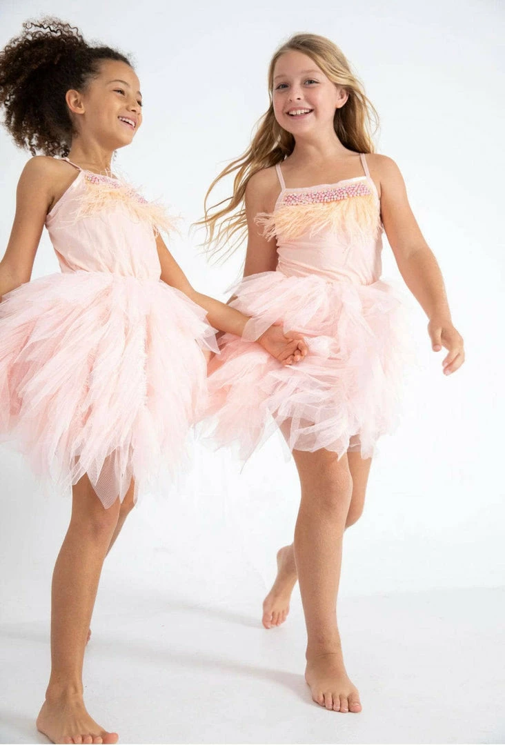 Feathers and pearls tulle dress