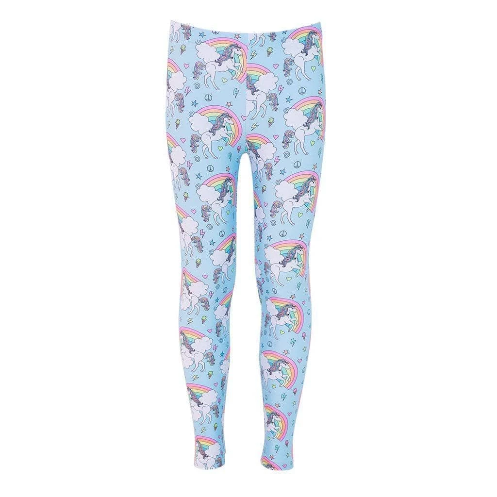 Baby blue leggings with emojis and unicorns, perfect for any unicorn lover!