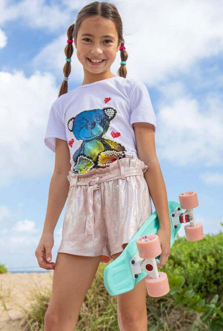 Shiny pair of shorts in a very beautiful gold color that will give your kid a stylish look and can be paired with most of tops you can think of.