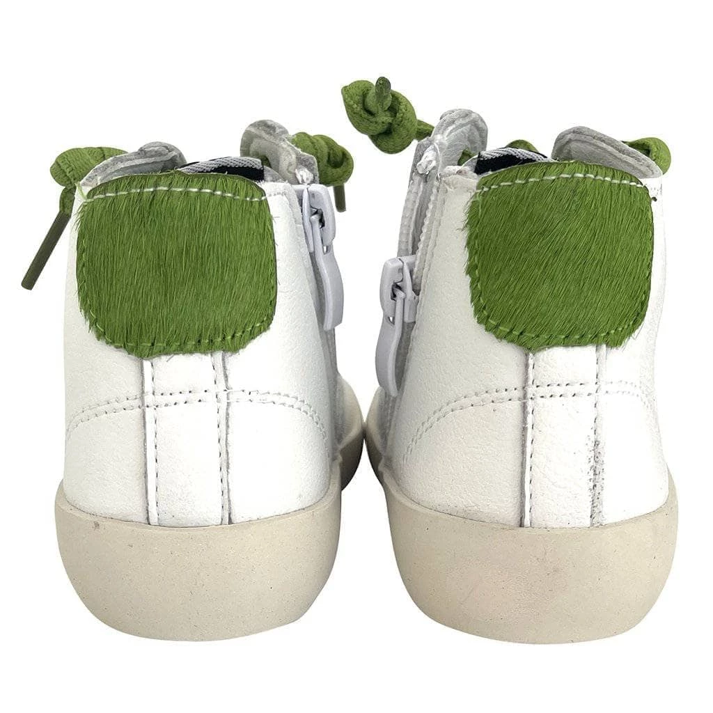 The coolest green faux fur accented white and grey star sneakers!Â