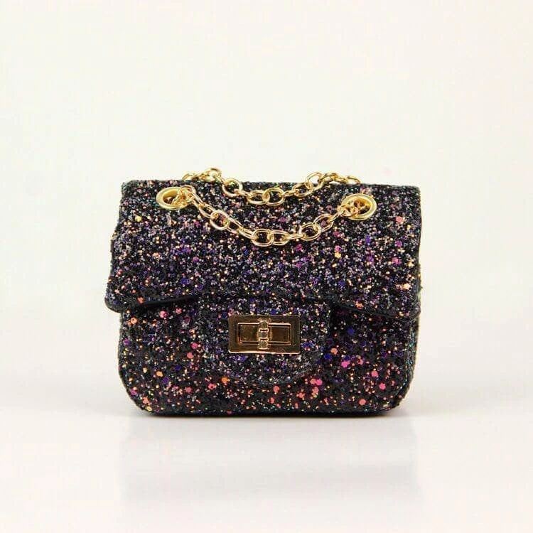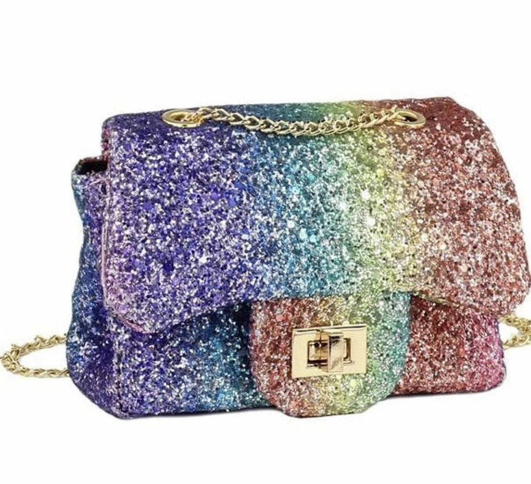 Our new mini coco purse comes with adorable glitter colors of white, purple and rainbow!