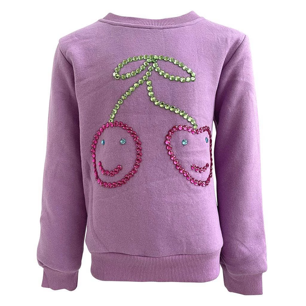 Purple crewneck light weight sweatshirt with smiley cherry gem detail on the front!