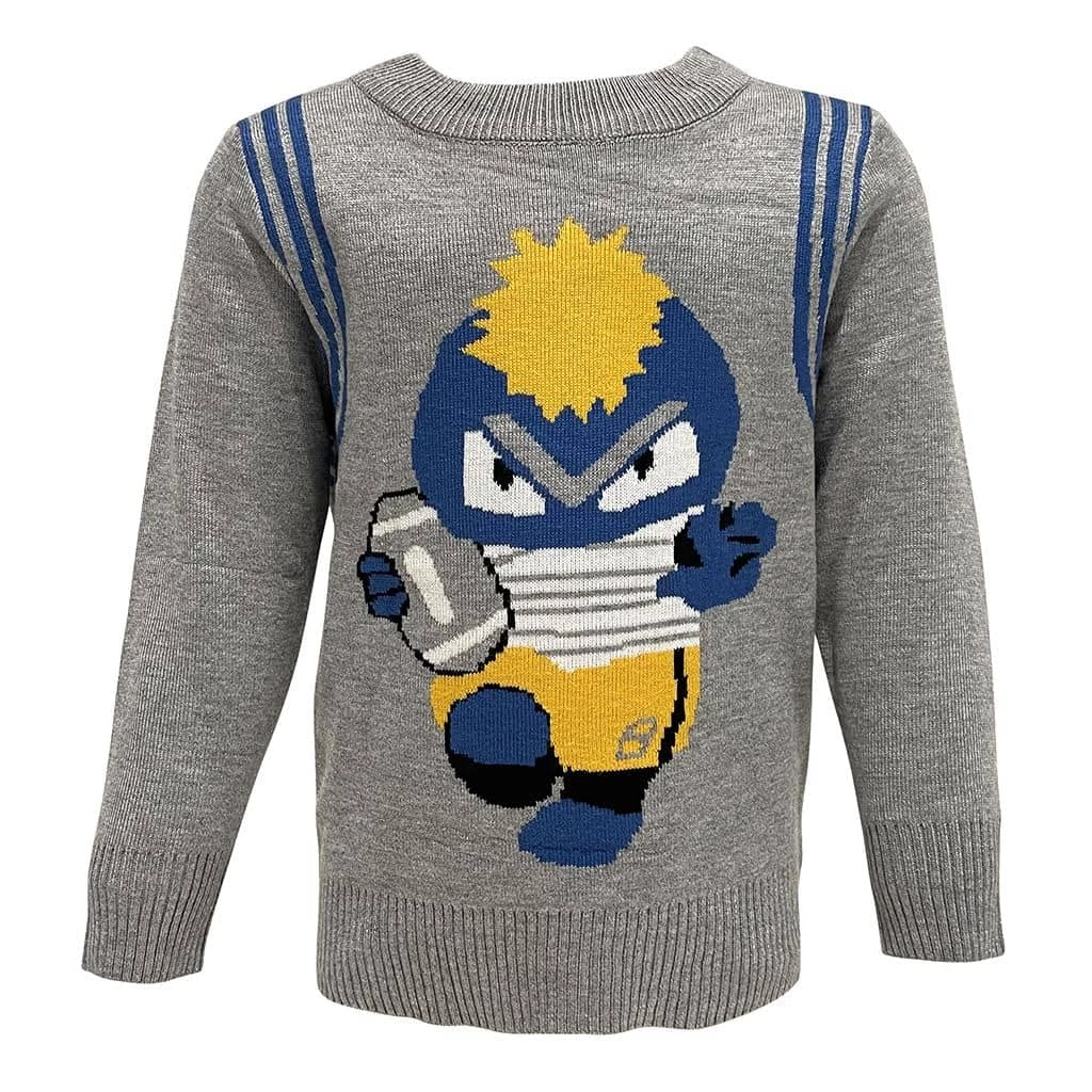 Grey light weight sweater with a football angry monster on the front!