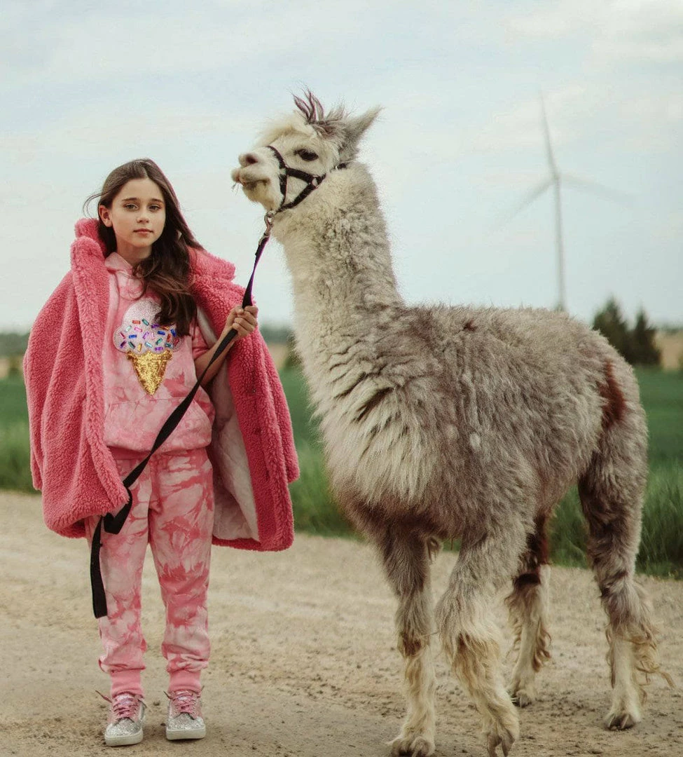 Hot pink tie dye jogger set with jeweled ice cream cone!
