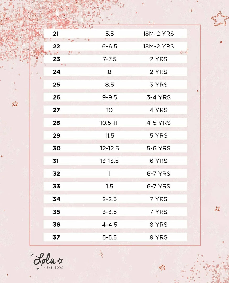 | Size | 5.5C (21), 6C (22), 7C (23), 8C (24), 9C (25), 9.5C (26), 10C (27), 11C (28), 11.5C (29), 12C (30), 13C (31), 1Y (32), 2Y (33), 3Y (34), 4Y (35), 5Y (36), 6Y (37) |