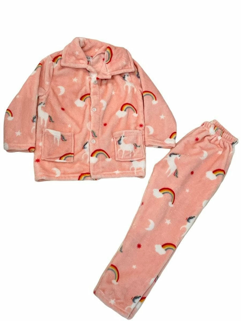 Stay comfortable in this plush pink button-up with pockets and a matching pair of pants.