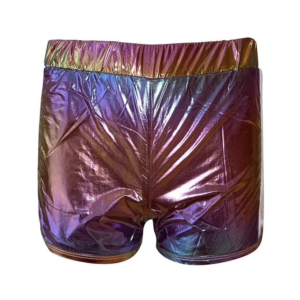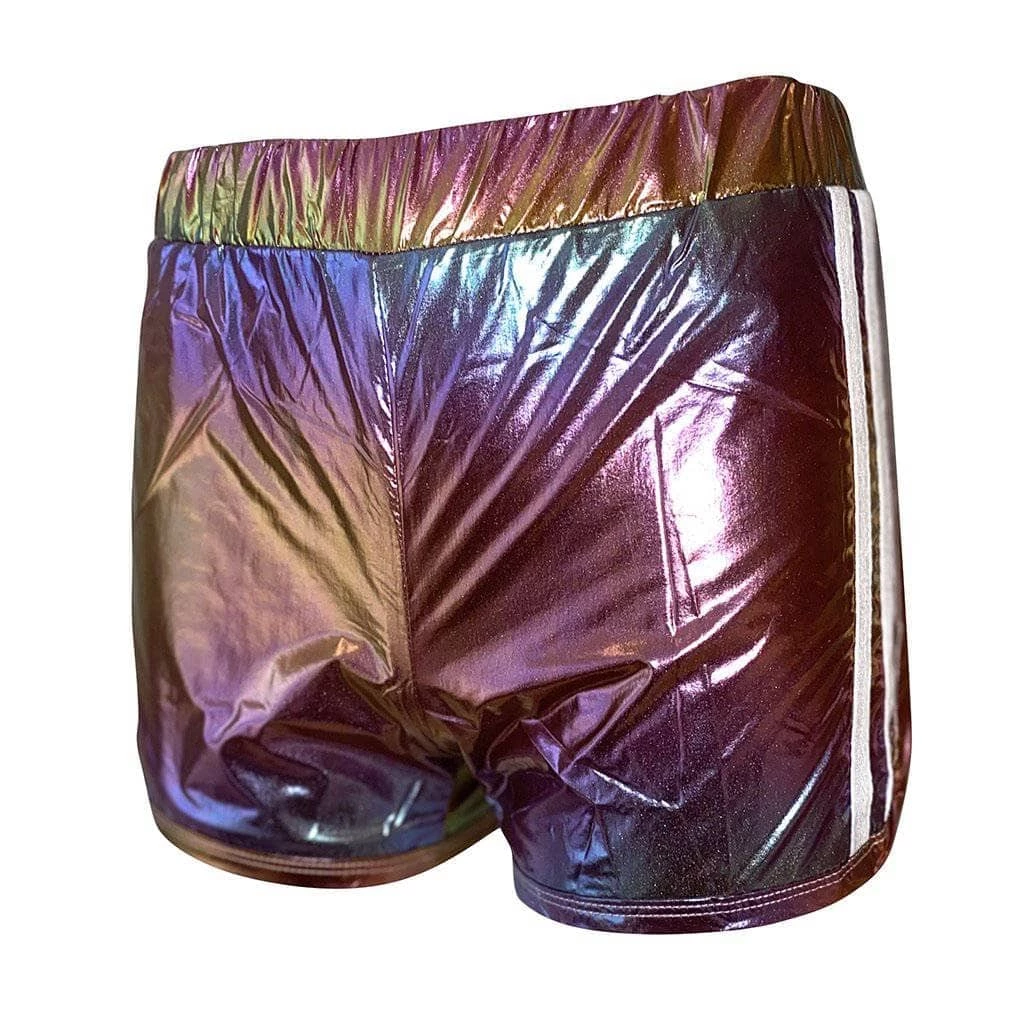 Metallic racer shorts with white stripes on both sides, reflective and thin material!