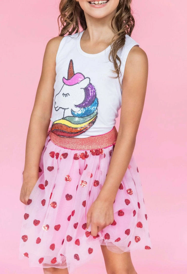Plain white tank with rainbow unicorn patch!Â