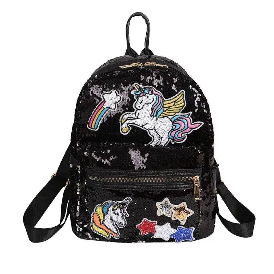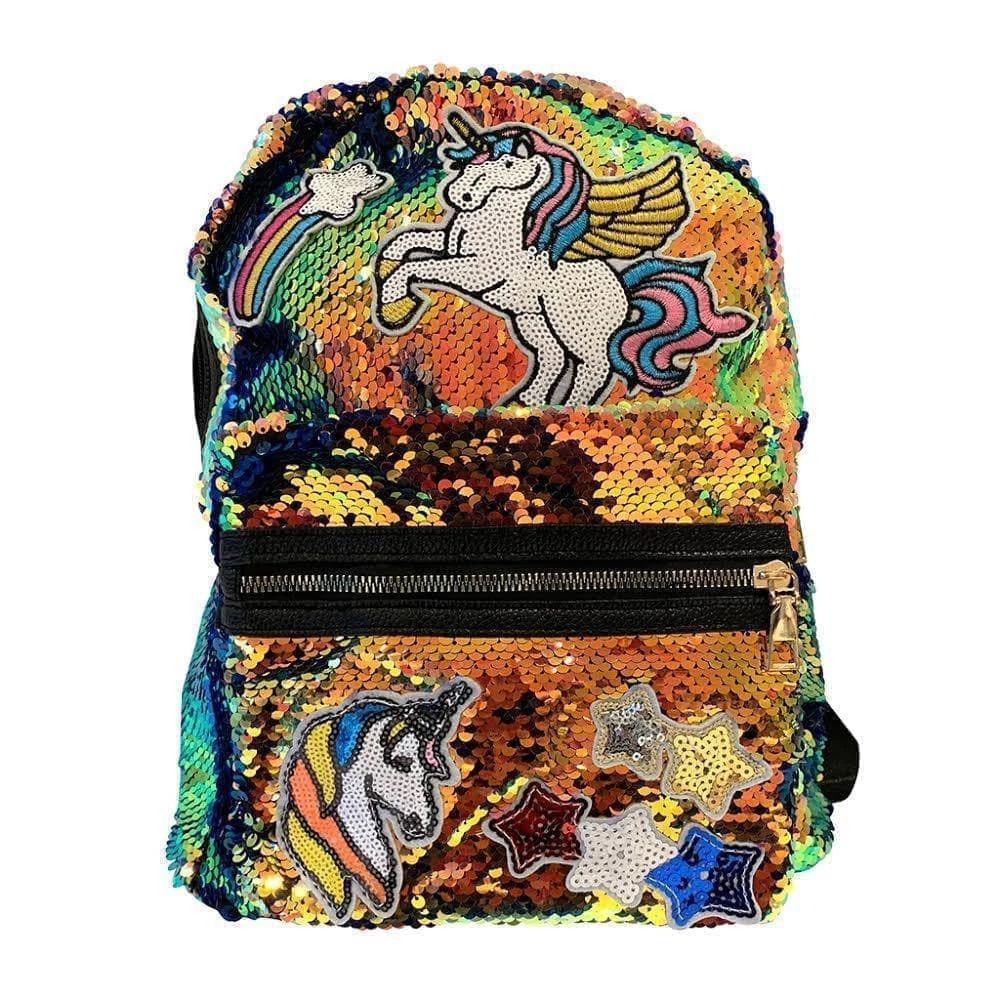 Colorful sequin backpack with some of your favorite patches!