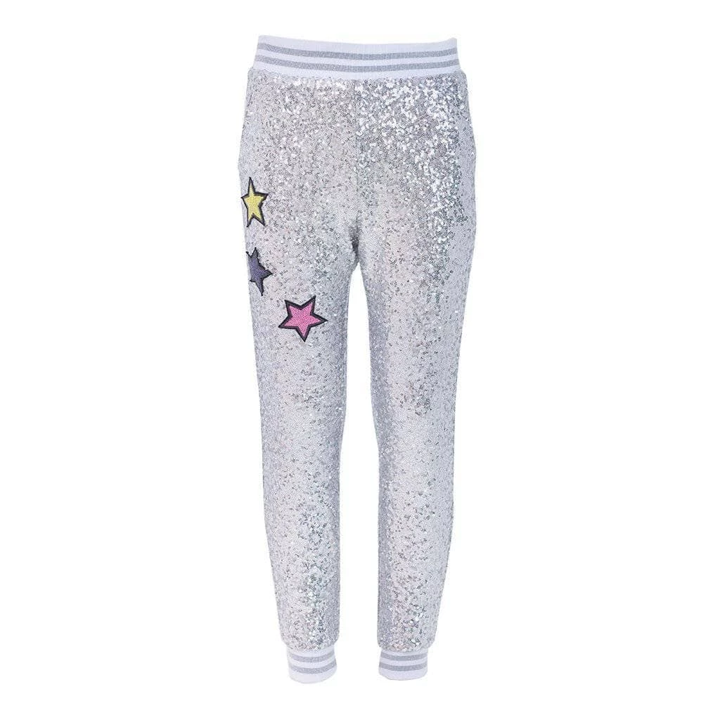We took our best seller Unicorn Sequin Bomber and made a matching pair of silver sequin star joggers!